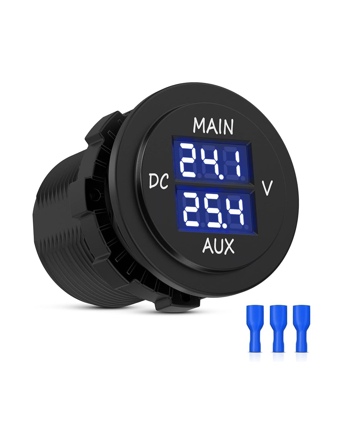 Doble voltímetro digital 12V redondo para batería de arranque y servicio