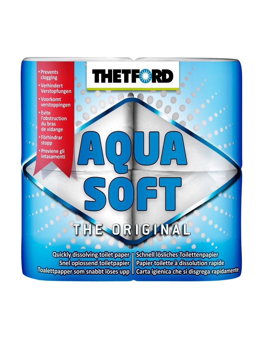El Aqua Soft es un papel higiénico especialmente diseñado para su uso en inodoros químicos de campers, autocaravanas y caravanas. Gracias a su fibra corta de rápida disolución, evita atascos y facilita el vaciado del depósito de residuos.