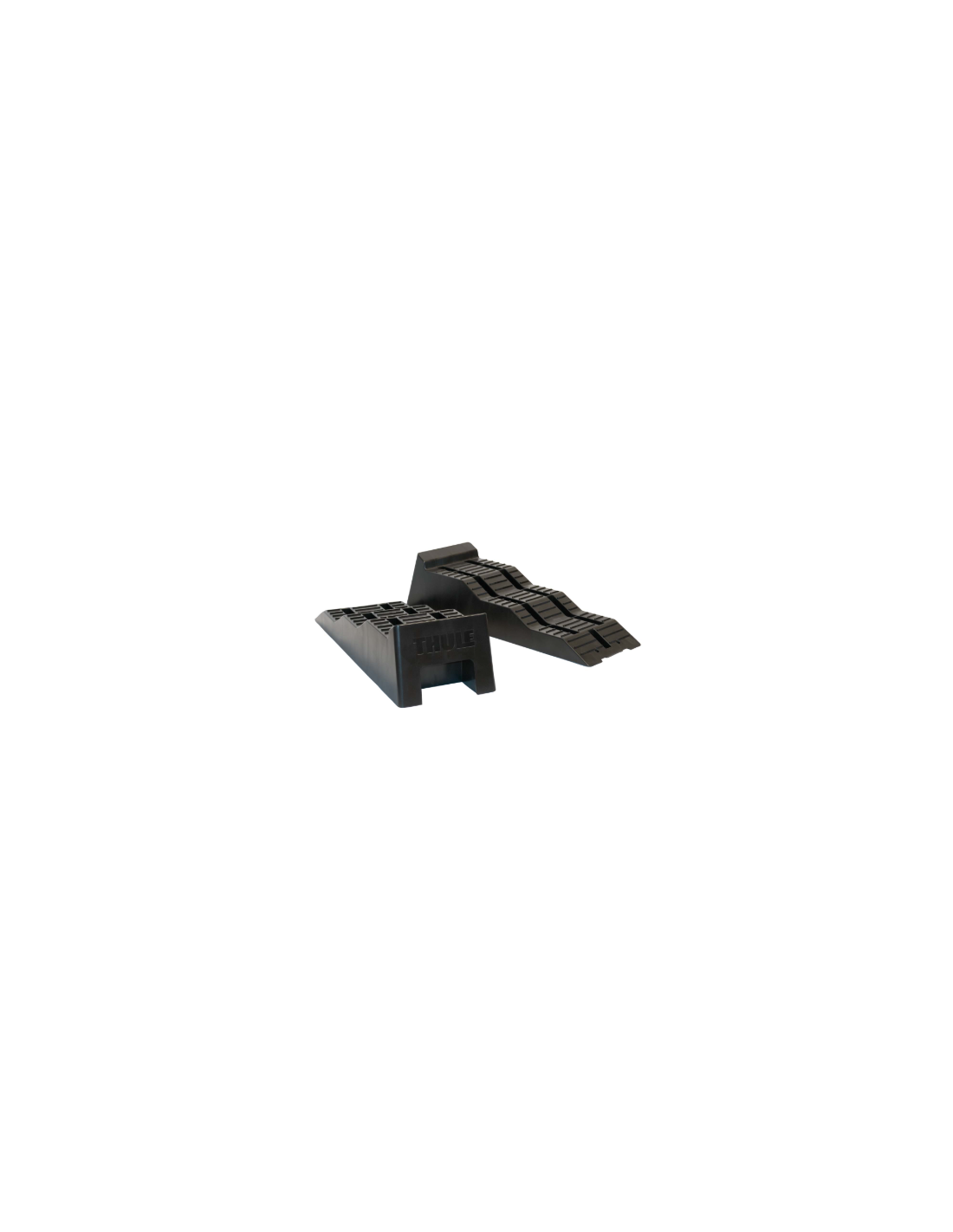 Juego de 2 calzos de nivelación con bolsa de transporte (incluida en color negro), diseñados para ofrecer máxima estabilidad en furgonetas grandes y autocaravanas.