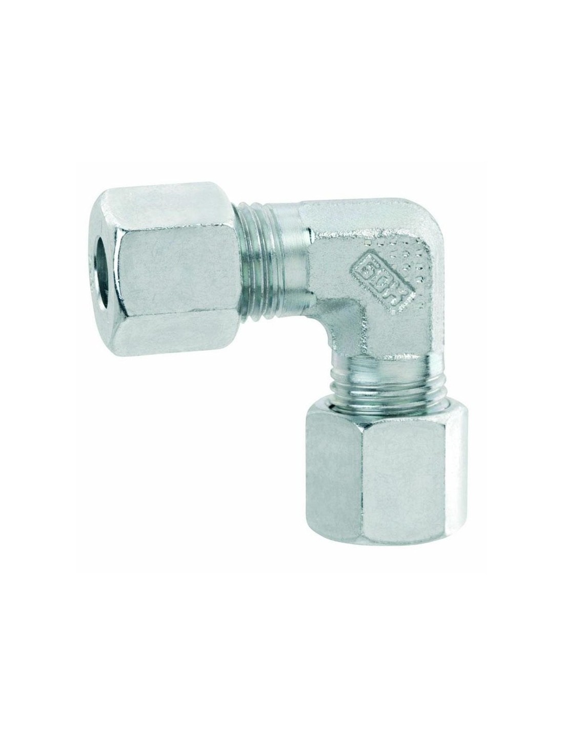Empalme codo 90º para tubo de cobre 8 mm. Entrada y salida ermeto.