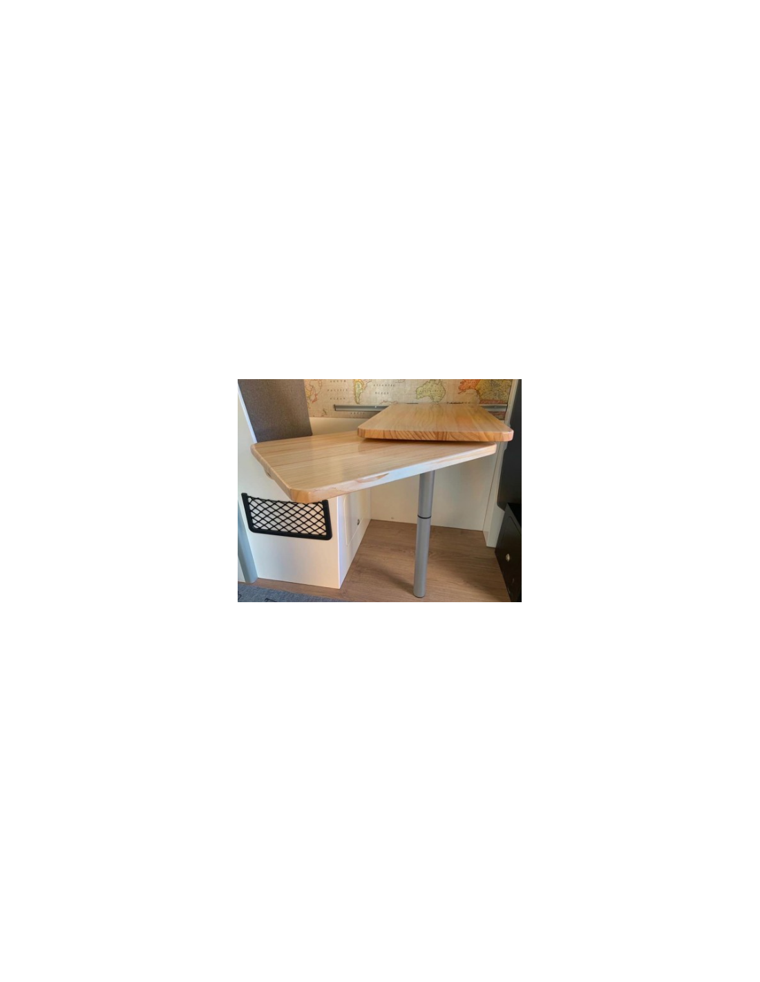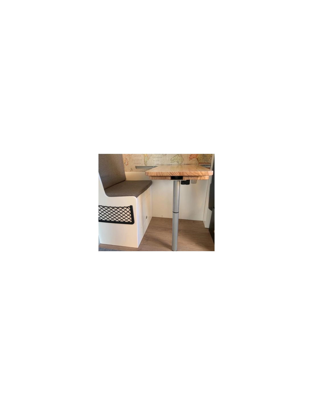 Pie de mesa giratorio. Diversas opciones de giro que permiten acercar la parte inferior de mesa al asiento giratorio de acompañante. Se desencaja, para poder tener opción de altura cama.